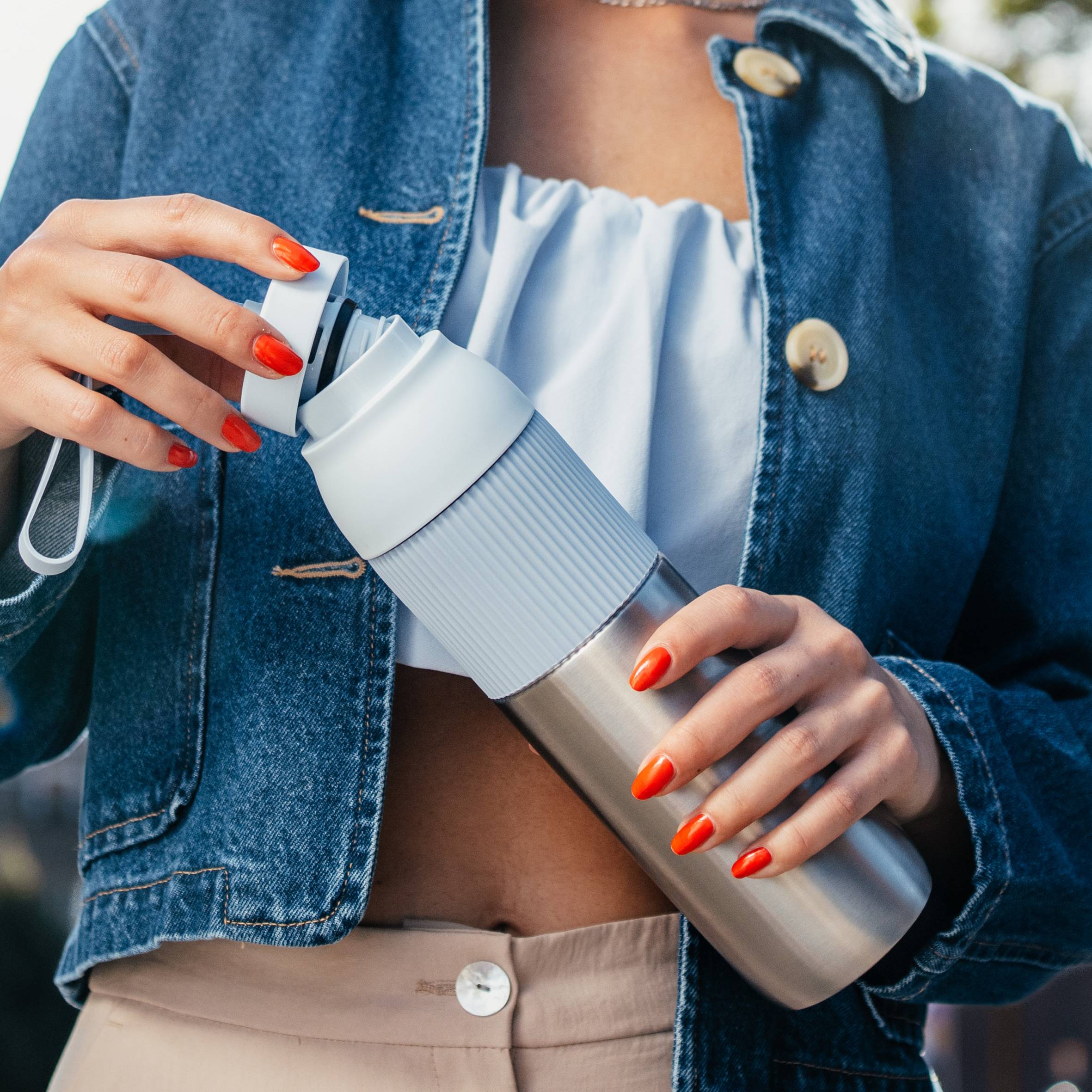 Où que vous alliez, beYou est là pour vous. Notre élégante gourde avec couvercle à visser est idéale pour vous hydrater partout, avec son design 100 % étanche qui assure un transport sûr dans votre sac. Le bec verseur protégé par le couvercle et les pièces compatibles au lave-vaisselle promettent une hygiène parfaite, tandis que ses propriétés isothermes incroyables gardent les boissons chaudes ou froides plus longtemps.