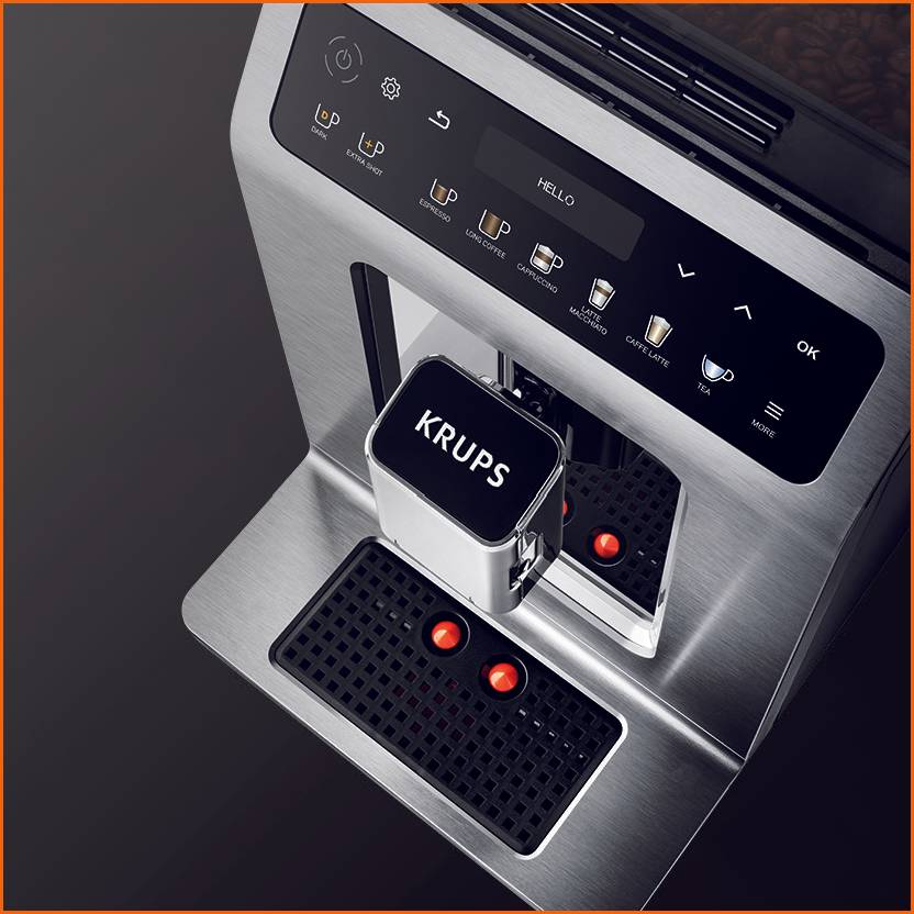 La machine à expresso automatique Evidence Plus de KRUPS vous offre à portée de main de savoureuses boissons chaudes au goût exceptionnel. Une machine à café avec 19 préréglages à personnaliser garantissant un résultat parfait à partir de grains fraîchement moulus, et un choix de six boissons réalisables en appuyant sur un seul bouton. Son grand panneau tactile coloré innovant et intuitif à écran OLED permet une préparation facile et rapide de toutes vos boissons préférées. Le broyeur conique en acier inoxydable assure un café moulu à la perfection à une vitesse impressionnante. Le système QUATTRO FORCE de KRUPS complète cette machine à café exceptionnelle, pour des boissons au goût incomparable.