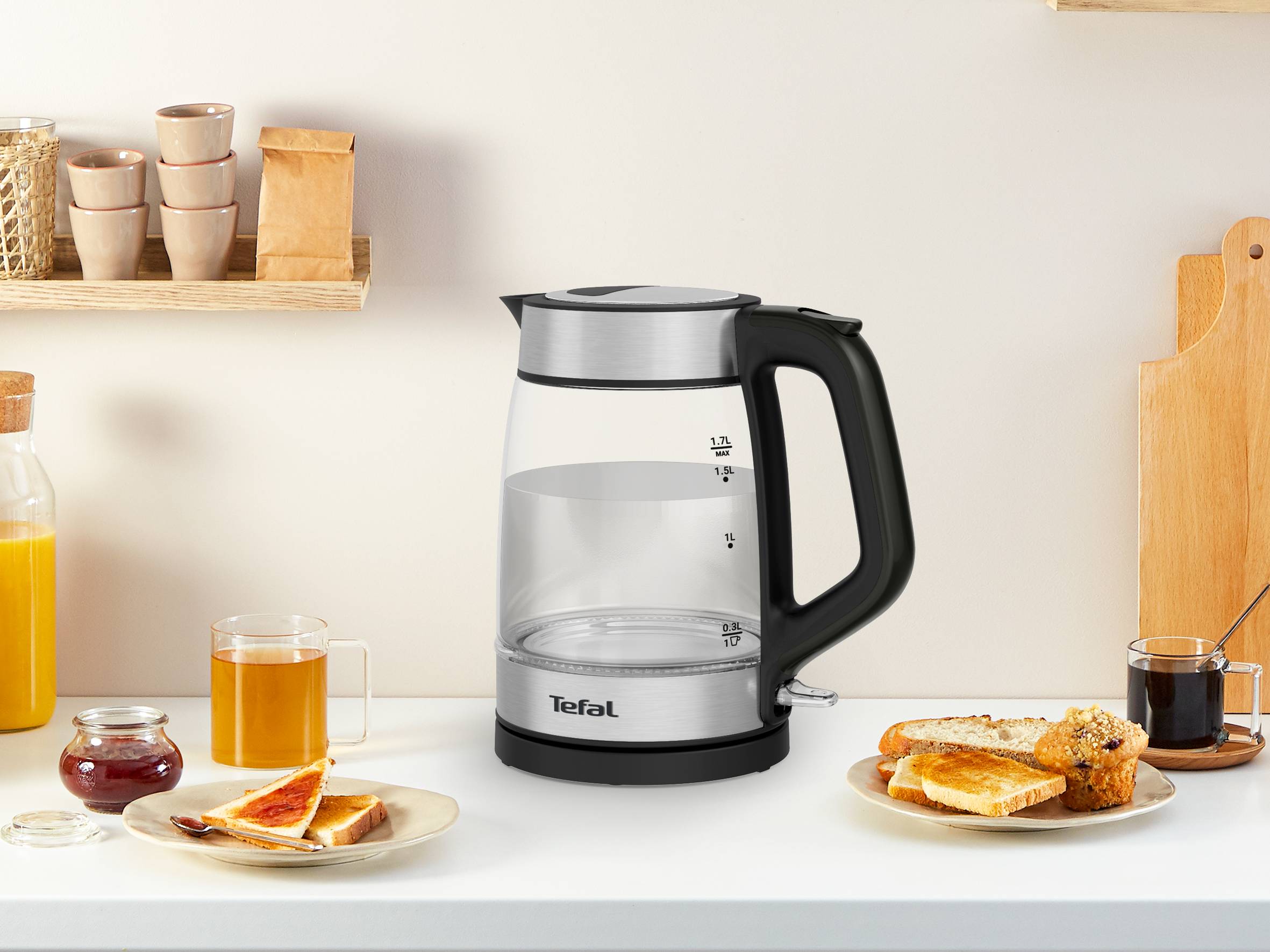 Fabriquée à partir de verre noble avec des accents métalliques premium et dotée d'un magnifique éclairage d'ambiance, la Bouilloire en Verre de Tefal allie élégance et praticité au quotidien. Son corps transparent avec des repères de mesure, y compris un indicateur pour 1 tasse, permet un remplissage précis en toute simplicité, vous faisant gagner du temps. Avec une généreuse capacité idéale pour la famille et les amis, cette bouilloire électrique a été conçue avec une gamme de fonctionnalités supplémentaires qui facilitent l'ébullition de l'eau.