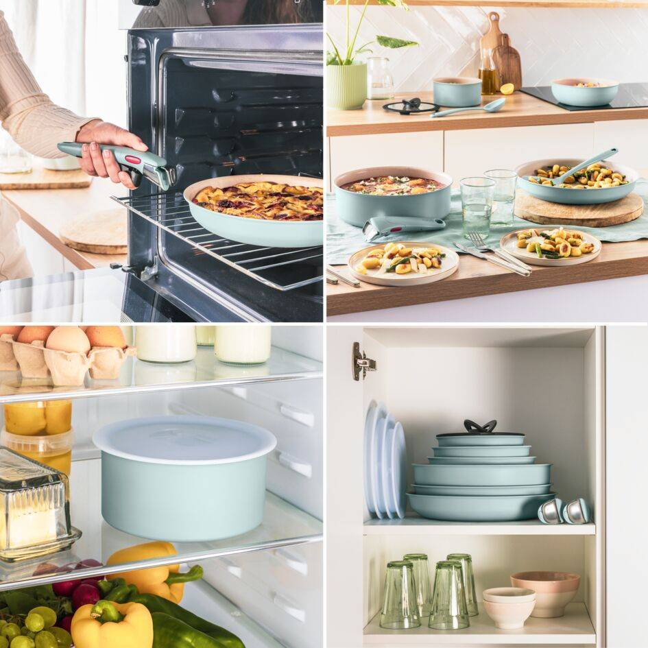 Faites griller, mijoter, rôtir et cuire tous vos plats avec des ustensiles dotés d'une poignée amovible pratique, et profitez de leur design empilable et facile à nettoyer Casserole idéale pour réaliser des sauces maison et des desserts sains, comme une sauce au chocolat vegan ou du caramel salé sans lactose Coloris eucalyptus avec poignée assortie et intérieur effet pierre pour un look élégant et moderne Nos produits innovants sont fabriqués en France avec soin et des matériaux de haute qualité Revêtement antiadhésif et résistant Mineralia+ offrant une glisse parfaite et une cuisson facile et pauvre en matières grasses au quotidien L'approche d'écoconception de Tefal : corps en aluminium 100 % recyclé, métal pouvant être recyclé et emballage avec 90 % de fibres recyclées Une poignée amovible brevetée et sécurisée qui peut supporter jusqu'à 10 kg (tests internes) et garantie 10 ans*