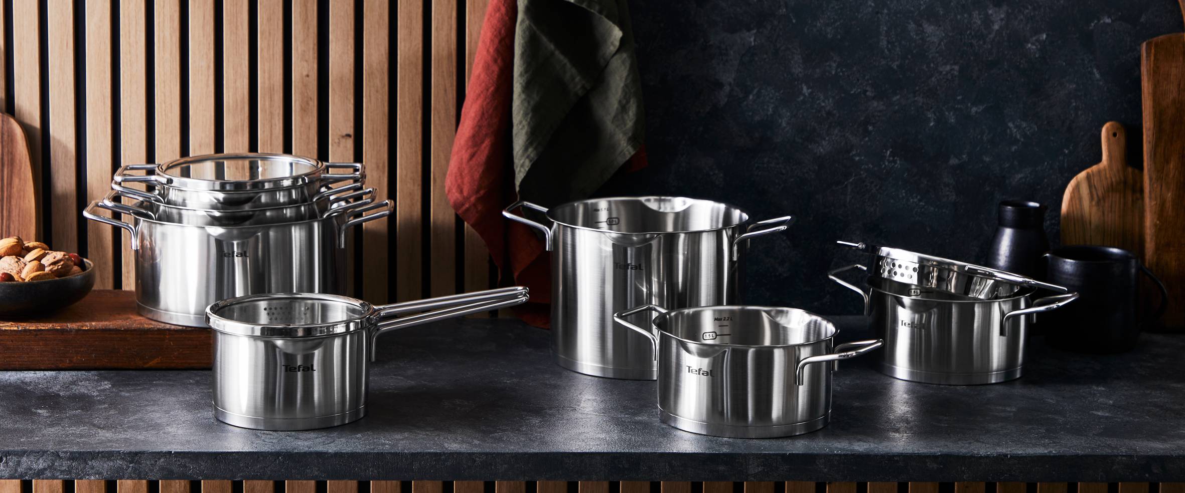 Créez des repas sains qui ont autant de goût que d'aspect, avec Tefal Nordica. Fabriquée de manière durable à partir d'acier inoxydable recyclé de haute qualité, cette gamme de batterie de cuisine offre une fonctionnalité et des performances inégalées grâce à son couvercle innovant à égouttage et à sa base à 3 couches assurant une diffusion de chaleur parfaite à chaque fois. Des lignes pures et un style élégant se marient dans cette batterie de cuisine compacte au design empilable et peu encombrant. Entièrement recyclable et compatible avec le lave-vaisselle, Nordica est idéale pour tous vos repas quotidiens.