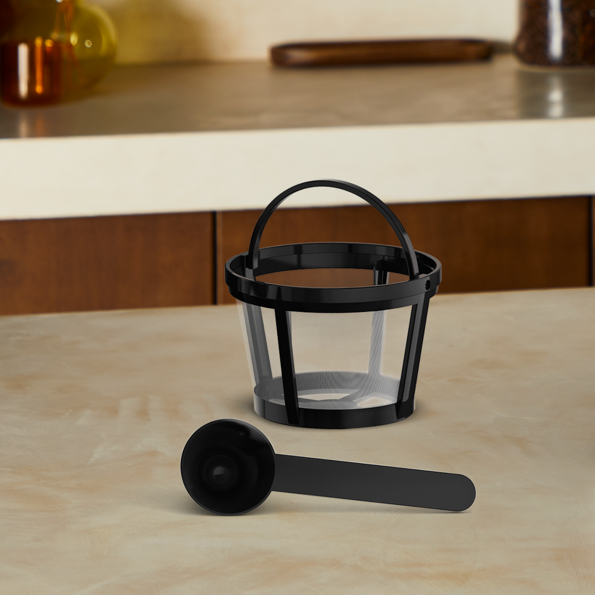 Cafetière à filtre avec 3 options de préparation : le mug isotherme inclus, la carafe en verre ou votre propre tasse Mug isotherme en acier inoxydable à double paroi (intérieur et extérieur) inclus, pour un café à emporter qui reste chaud plus longtemps (jusqu'à 450 ml) Cafetière filtre : utilisez la cuillère doseuse et le filtre permanent pour préparer jusqu'à 3 tasses de café à la fois
