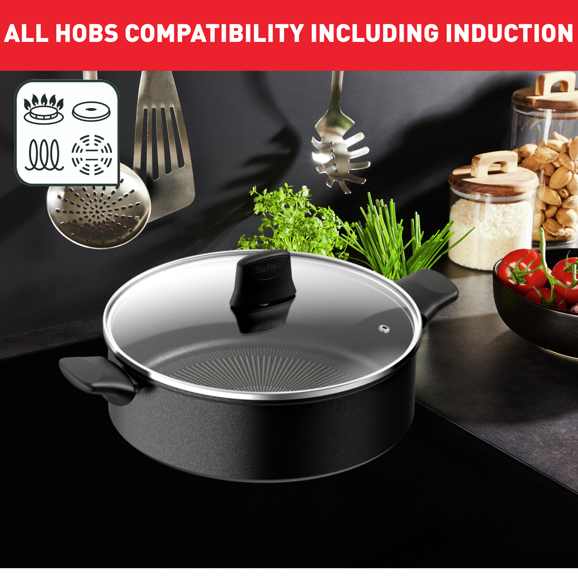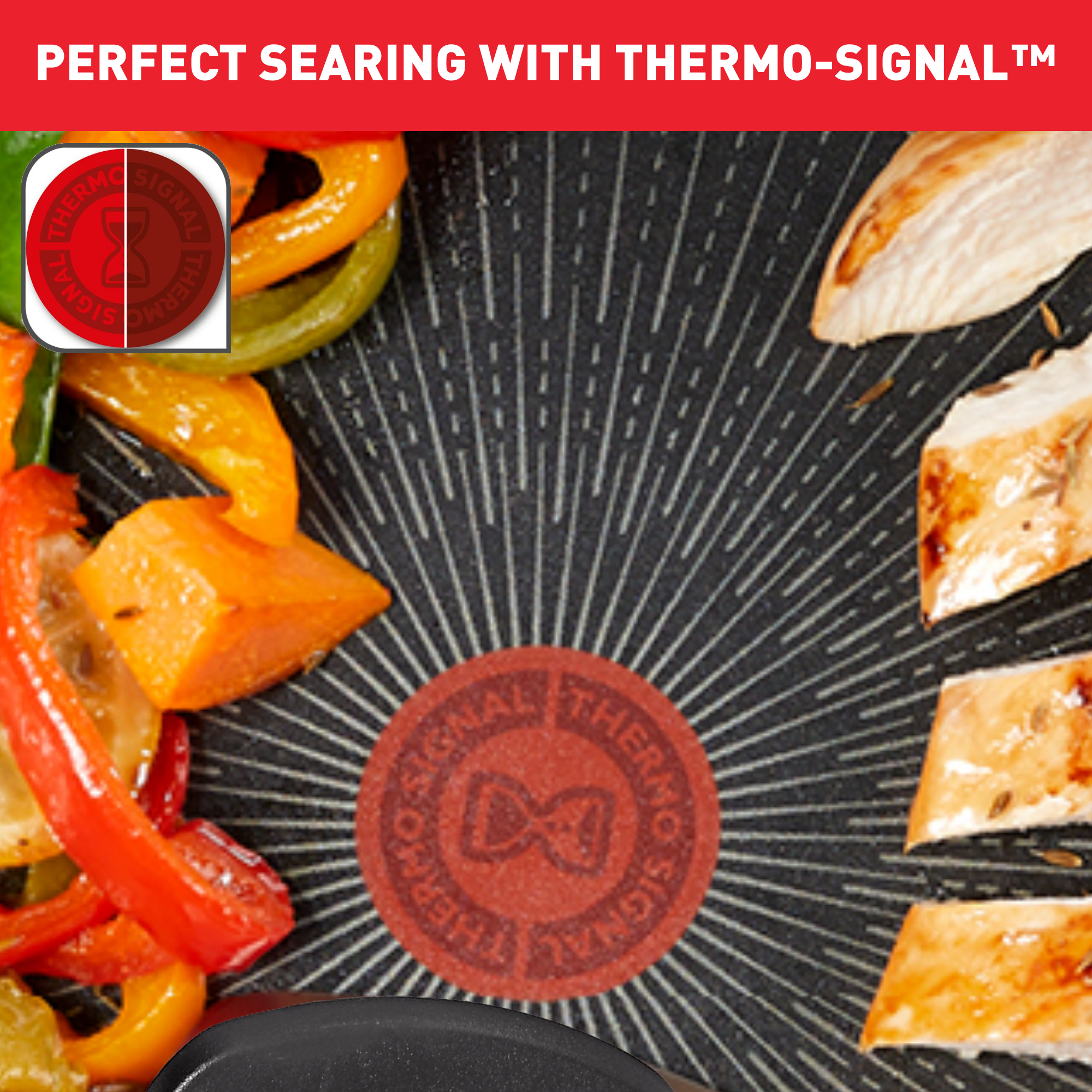 Revêtement antiadhésif extra-résistant pour des performances durables, un nettoyage facile et une glisse sans faille L'indicateur de chaleur Thermo-Signal change de couleur lorsque la poêle atteint la température idéale pour démarrer la cuisson Technologie supérieure Thermo-Fusion+ induction pour une montée rapide en température et des résultats de cuisson uniformes - compatible avec toutes les plaques de cuisson