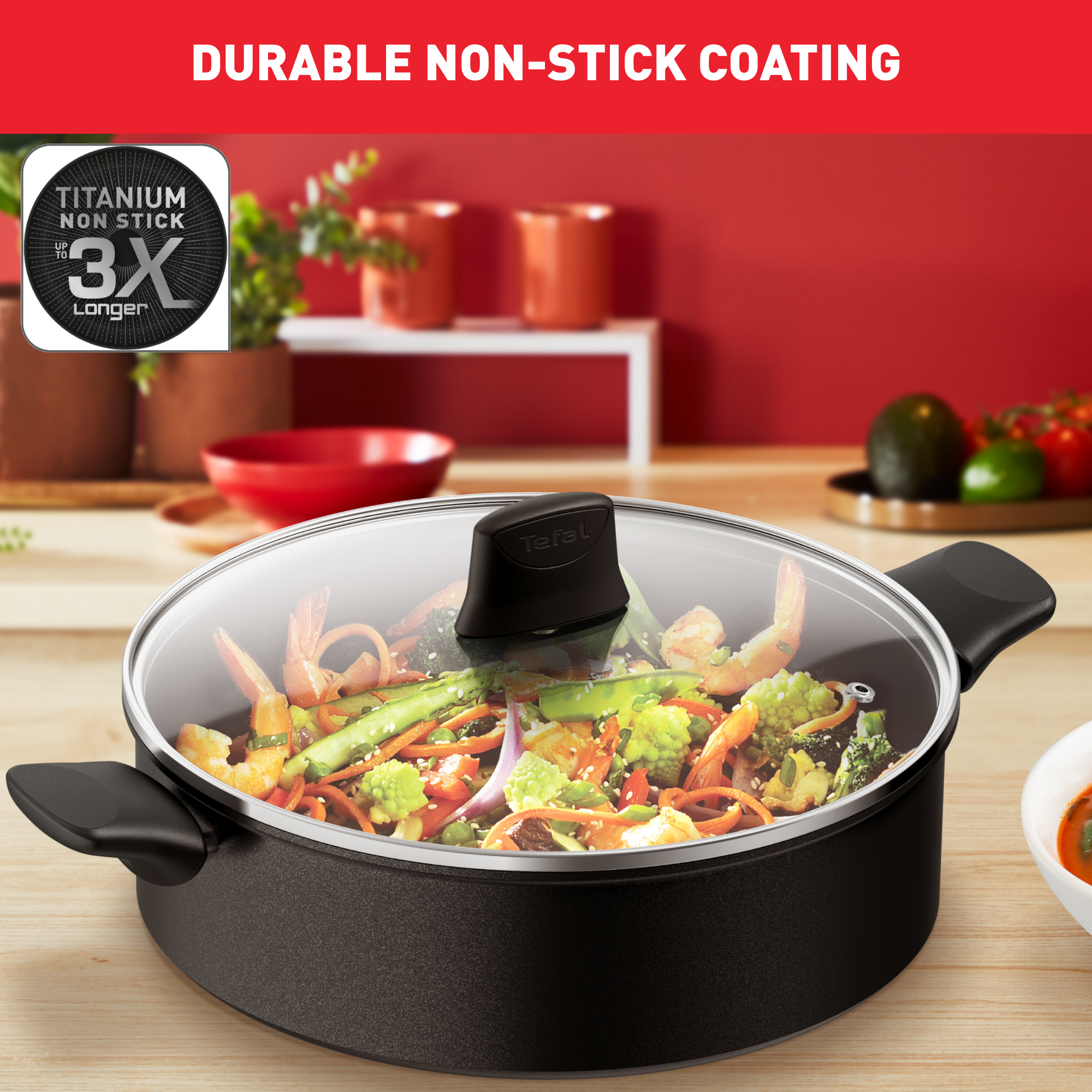 Variations extrêmes de température, ustensiles agressifs, nettoyage abrasif à répétition... Les batteries de cuisine sont souvent malmenées au cours d'une vie. C'est pourquoi Tefal, avec tout son savoir-faire, a conçu une sauteuse faite pour durer : Ultimate On. Des légumes sautés au poisson tendre et au steak saisi à la perfection, cette sauteuse est idéalement adaptée à une grande variété de recettes délicieuses. Son revêtement Titanium ultra-résistant est renforcé en particules de titane, pour une performance antiadhésive qui dure jusqu'à 3 fois plus longtemps*. Dotée de la dernière innovation en matière d'induction, Thermo-Fusion+, elle assure également une distribution rapide et uniforme de la chaleur pour une cuisson homogène des aliments. Enfin, la technologie Thermo-Signal indique la température idéale de démarrage de la cuisson pour des repas parfaitement réussis et pleins de saveur. Profitez de longues heures de cuisson, vous pouvez compter sur votre sauteuse Ultimate On. *Par rapport au revêtement standard de Tefal.