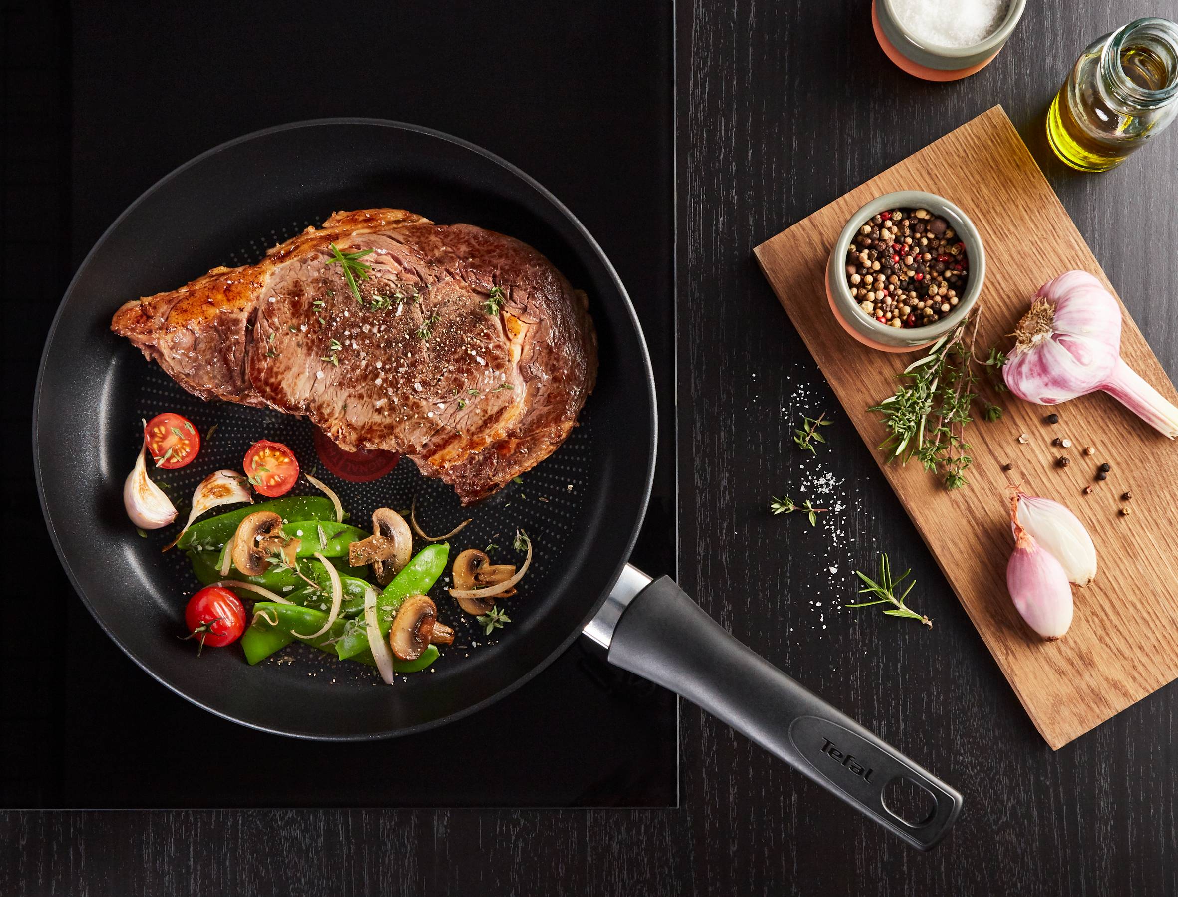 Revêtement antiadhésif extra-résistant pour des performances durables, un nettoyage facile et une glisse sans faille L'indicateur de chaleur Thermo-Signal change de couleur lorsque la poêle atteint la température idéale pour démarrer la cuisson Technologie supérieure Thermo-Fusion+ induction pour une montée rapide en température et des résultats de cuisson uniformes - compatible avec toutes les plaques de cuisson Idéale pour les recettes telles que le steak Reverse sear, le saumon grillé tendre, les légumes sautés, etc Antiadhésif sûr : des ustensiles de cuisson de haute qualité sans danger pour toute la famille, sans PFOA, sans plomb et sans cadmium Compatibilité totale avec toutes les plaques de cuisson, y compris celles à gaz, électriques, vitrocéramique et à induction Nos produits innovants sont fabriqués en France avec des matériaux de haute qualité et avec le plus grand soin Tefal, le numéro un mondial des ustensiles de cuisine*, garantit des résultats parfaits à chaque fois.
