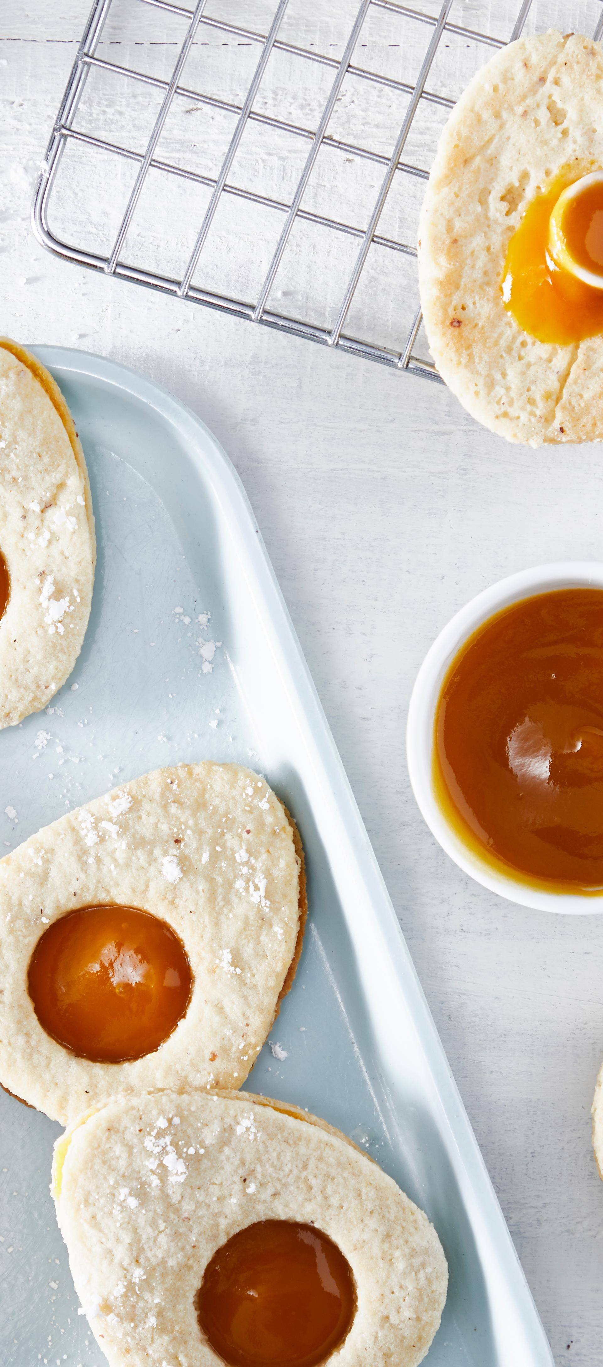Laisser refroidir avant de garnir les sablés. Etaler la confiture sur le côté plein des sablés. Recouvrir d’un biscuit avec le rond découpé. Saupoudrer de sucre glace.