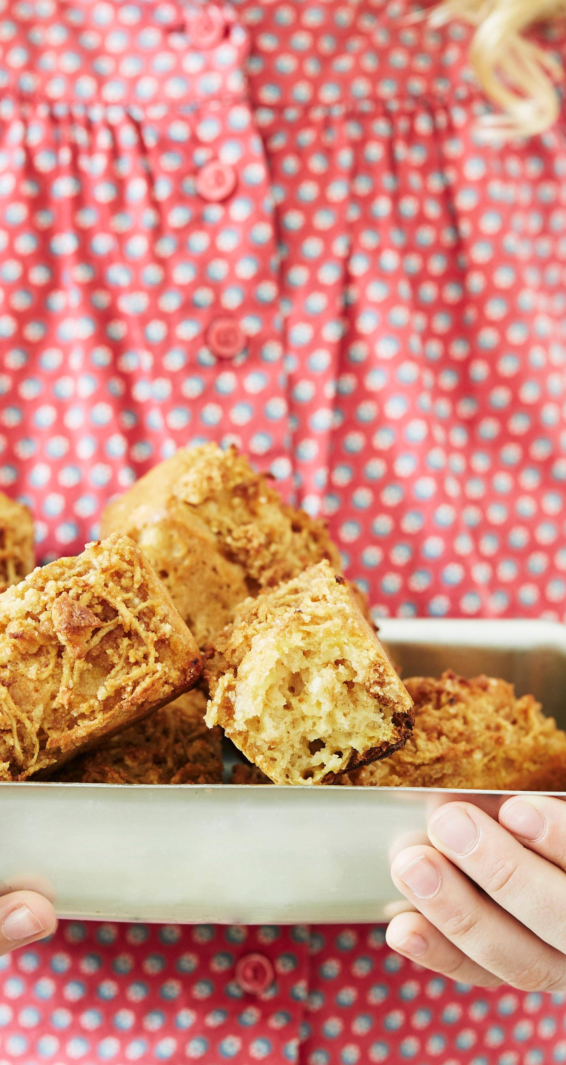 Dans un saladier, mélanger la pomme râpée, le reste de cookies en morceaux et la cassonade . Répartir sur les cakes. Déposer les moules dans le Cake Factory.