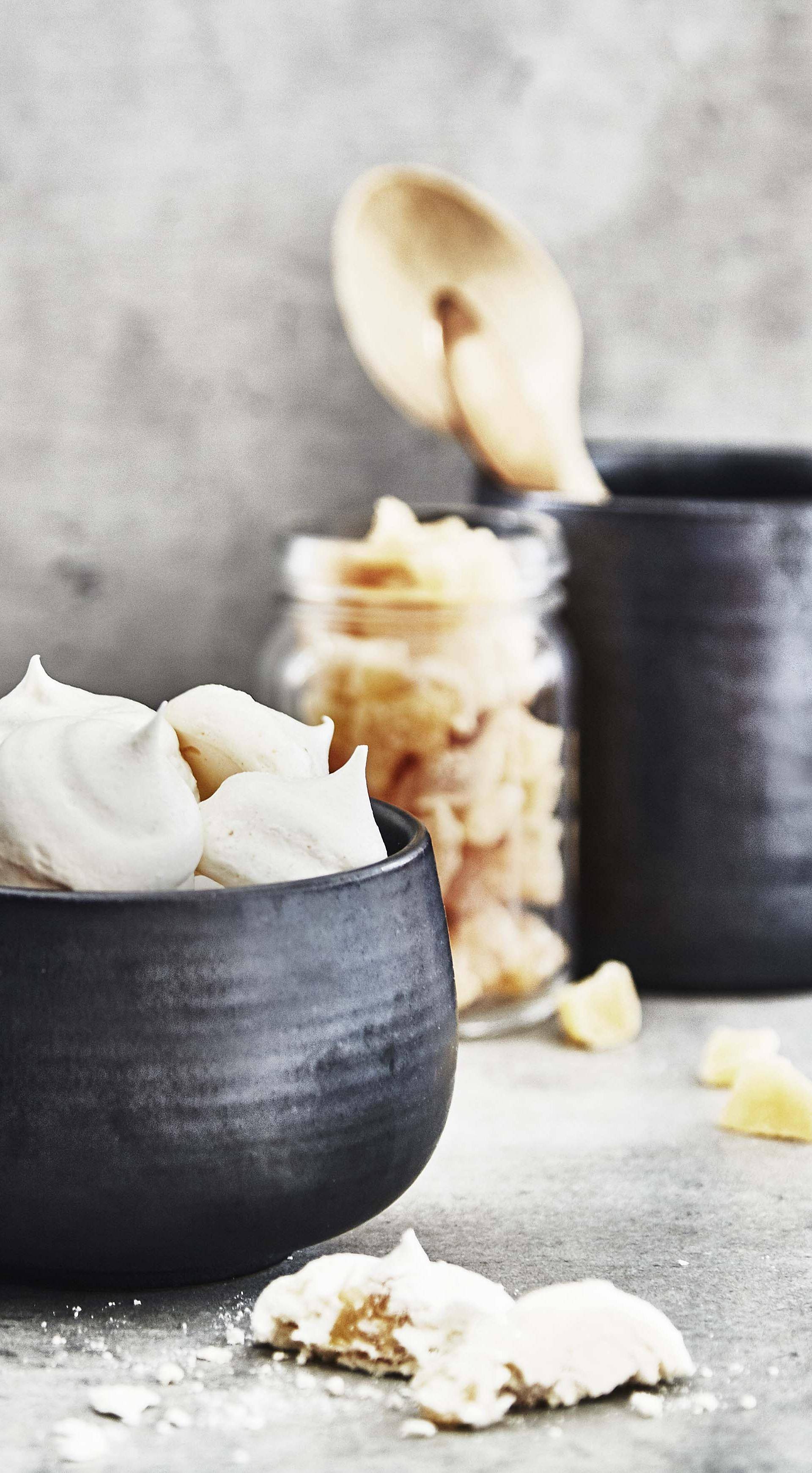 Saupoudrer le moule avec un peu de fécule. Former 12 jolies meringues. Placer le moule dans le Cake Factory.