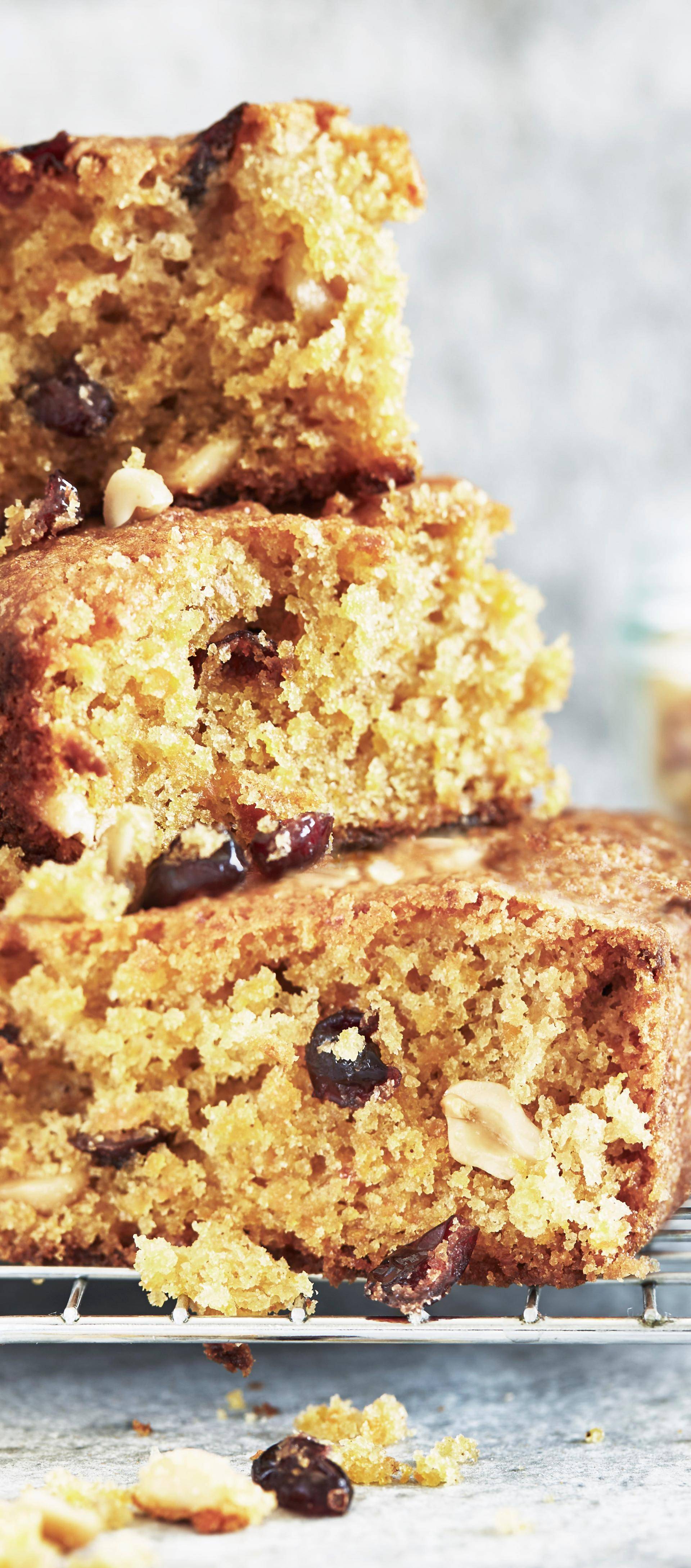 Terminer en ajoutant le patate douce, les canneberges et les cacahuètes. Mélanger. Verser dans le moule beurré. Le déposer dans le Cake Factory.