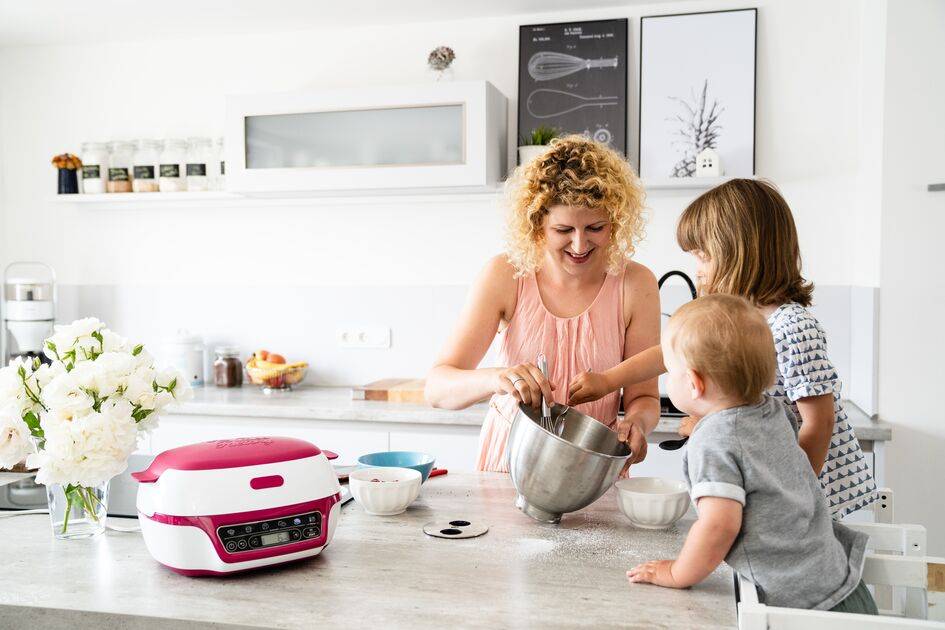 Als het op bakken aankomt, laat u zich best leiden door creativiteit! Uitermate geschikt voor leuke momenten onder elkaar: met de Cake Factory, die voorzien is van 6 automatische programma's met elektronische temperatuurregeling, wordt het bakken van heerlijke gebakjes uiterst eenvoudig. Het slimme, gebruiksvriendelijke ontwerp is ideaal om zelfs samen met de jongsten van de familie in gebruik te nemen - voor een zorgeloos bakken, zonder enig giswerk. Verder is echt alles wat u ook maar nodig heeft om aan de slag te kunnen inbegrepen: twee twee siliconen bakvormen van PROFLEX, een Tefal-keukenweegschaal, een bakpan, een rooster voor een gelijkmatig bakresultaat, evenals een receptenboek en een snelstartgids. Plus, u kan zelfs nog meer ideeën en tips ontdekken in de handige mobiele app! Met een cake-achtige vorm die plezier brengt in uw keuken, en een royaal en toch compact formaat dat eenvoudig kan worden opgeborgen, dit baktoestel zal iedereen inspireren!