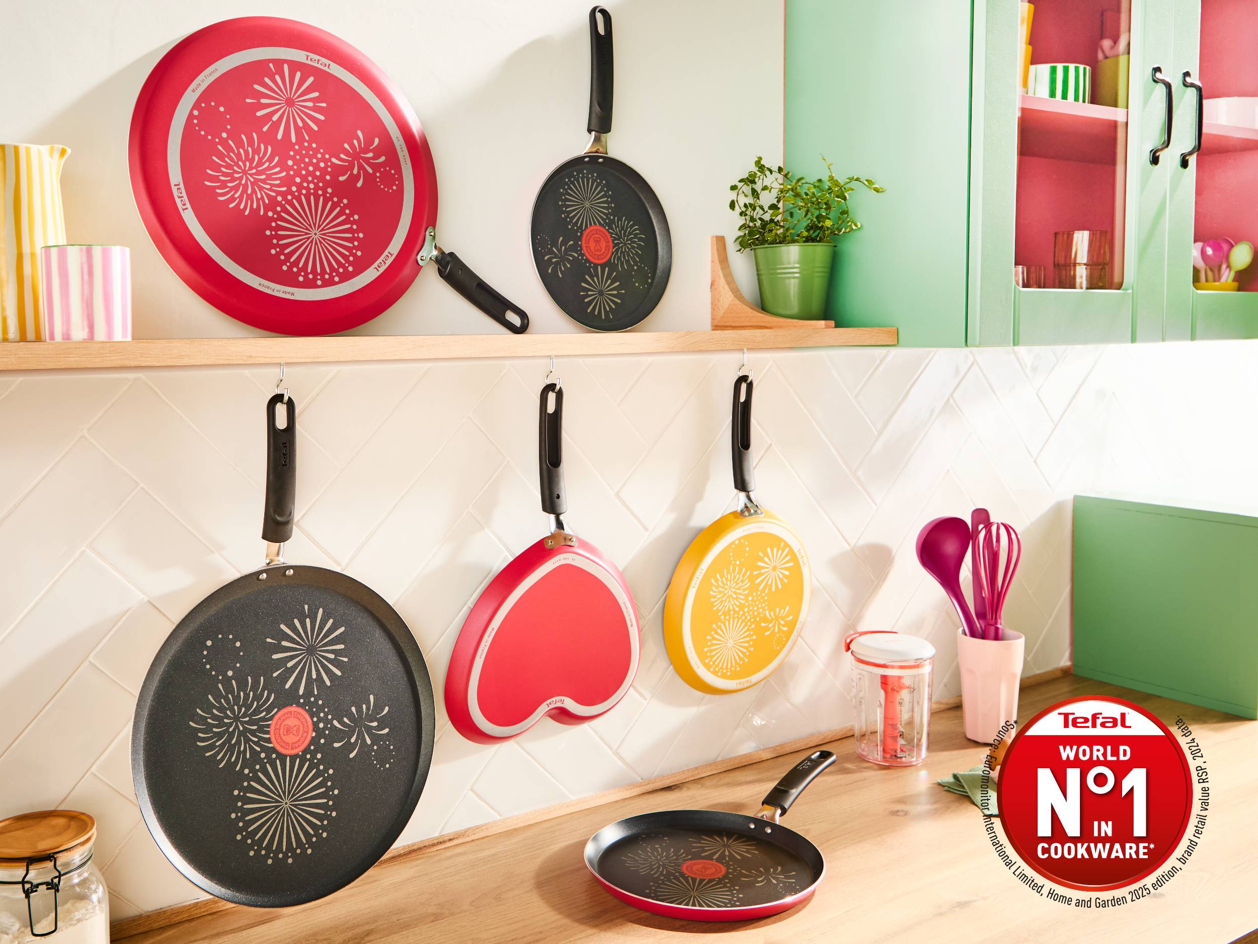 Een limited edition hartvormige pannenkoekenpan met een opvallende decoratie die zeer bestand is tegen hitte en krassen Hou de hele familie vol en gelukkig met een eindeloze variëteit aan heerlijke pannenkoeken—de perfecte maaltijd om te delen Geef je keuken een energieke boost met een selectie van stijlvolle kleuren die altijd de aandacht trekken Betrouwbare antiaanbaklaag voor eenvoudiger koken en moeiteloos schoonmaken, dag in dag uit Antiaanbaklaag binnen en buiten voor moeiteloos schoonmaken Diffusiebodem voor gelijkmatige warmteverdeling over het oppervlak van de pan en uitzonderlijk homogene kookresultaten Thermo-Signal™ warmte-indicator verandert van kleur wanneer de pan de ideale starttemperatuur bereikt, voor perfect aanbraden Onze op innovatie gerichte producten worden in Frankrijk gemaakt van hoogwaardige materialen en met de grootste zorg