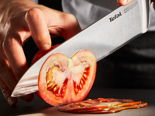 Ontdek Precision, Tefal’s scherpste messencollectie, en geniet elke keer van een perfecte, precieze snede. Het is het keukenmes dat moeiteloos elk ingrediënt aankan—alles in perfecte elegantie! Geniet van verfijnde lijnen en eindeloos comfort in de hand. Volledig gemaakt van Duits roestvrij staal en behandeld met ons speciale Ice Hardening-proces, belooft Precision duurzame prestaties, uitstekende stevigheid en weerstand tegen corrosie.