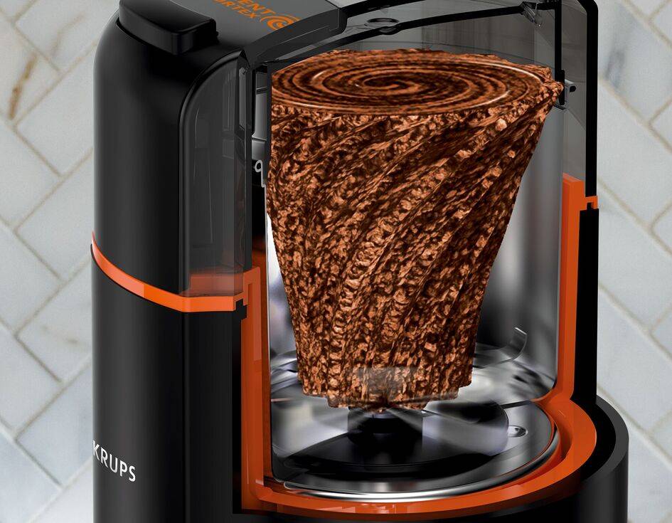 Het innovatieve design van de Silent Vortex zorgt ervoor dat vermalen nu nóg efficiënter kan. De specifieke messen en de interne structuur creëren een maalstroom in de verwijderbare kom, waarbij koffiebonen omhoog worden gestuwd om opnieuw te kunnen worden gemalen. Het product omvat ook een ingenieus deksel dat het lawaai van de molen beperkt.