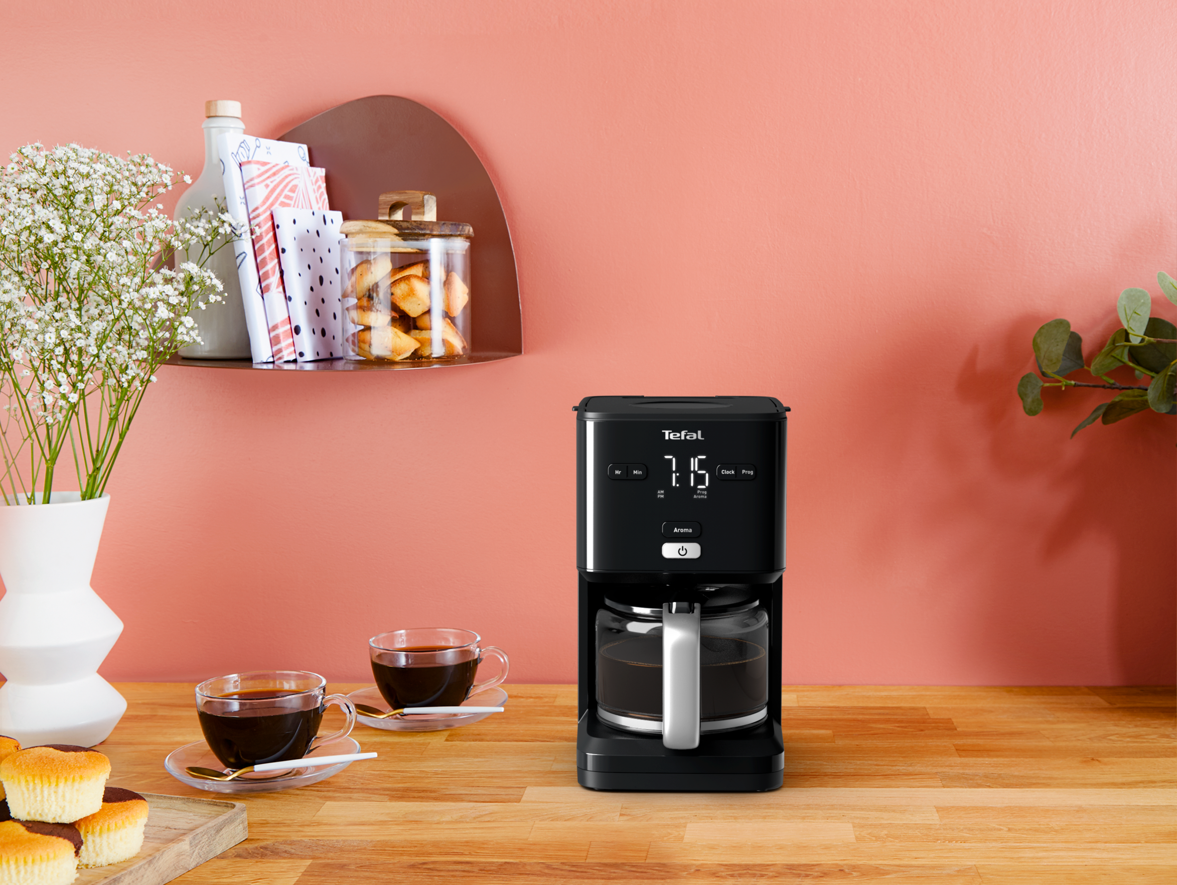 De Smart'n Light koffiemachine van Tefal, ontworpen met een gestroomlijnde, moderne look, voorziet in een tijdloze koffiesmaak en een perfecte dagelijkse koffiebereiding. Dit eenvoudig te gebruiken koffiezetapparaat met filter en voor 15 kopjes is uitgerust met een optimale bereidingstechnologie - met inbegrip van een extra grote waterkop en de AROMA-functie voor het in twee stappen zetten van pre-infuus koffie - opdat de aromatische koffie elke keer weer boordevol is van smaak. De eenvoudig te gebruiken bediening van het elektrische koffiezetapparaat zorgt voor een perfecte start van de dag, met een programmeerbare timer om de brouwcyclus tot 24 uur van tevoren in te stellen. Voer uw koffiebereiding tot een hoger niveau dankzij de reeks handige functies: automatische uitschakeling na 30 minuten, het antidrupsysteem opdat u de koffie op elk moment tijdens de bereiding ervan kunt serveren, en een perfecte capaciteit van 1,25 liter voor 15 kopjes versgezette koffie.