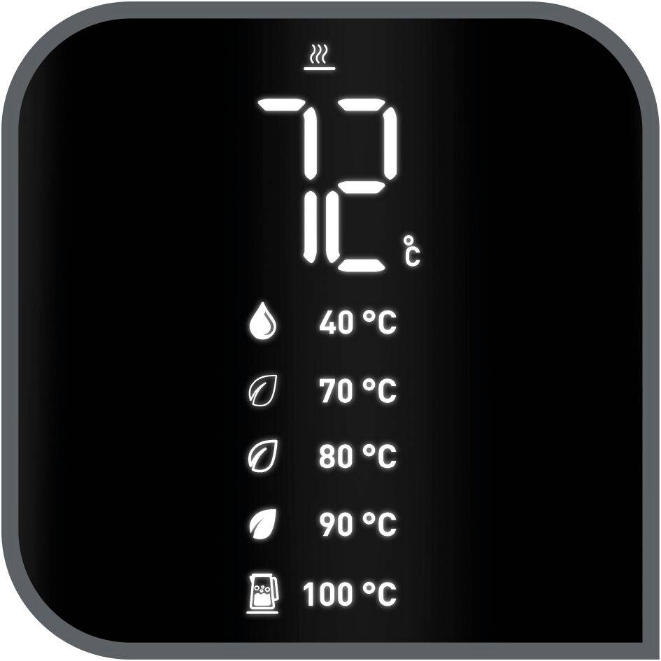 MAKKELIJK TE LEZEN: Moderne elektrische waterkoker met een minimalistisch, gemakkelijk af te lezen digitaal scherm met real-time temperatuurweergave POLYVALENTIE: Vijf temperaturen met elektronische selectie om al je favoriete warme drankjes te maken: 40°C, 70°C, 80°C, 90°C en 100°C BEVEILIGING: Veilig aanvoelend oppervlak biedt een elektrische waterkoker die aan de buitenkant koel blijft voor totale gemoedsrust GEBRUIKSGEMAK: Koken met één druk op de knop, met directe toegang tot de stand op 100°C, voor perfect kokend water binnen handbereik PRAKTISCH: 30 minuten warmhoudfunctie voor overheerlijke warme dranken die klaar zijn wanneer jij dat bent EENVOUDIG TE REINIGEN: Naadloos roestvrijstalen binnenwerk voor eenvoudig schoonmaken en perfect onderhoud doorheen de tijd