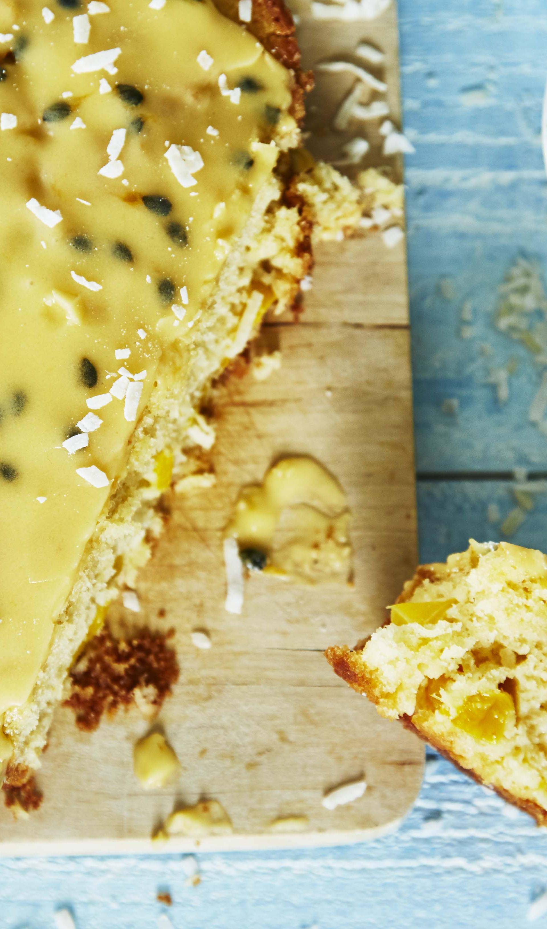 Dans un bol, placer la pulpe du fruit de la passion. Ajouter le sucre glace et quelques gouttes de jus de citron. Mélanger jusqu’à avoir un glaçage homogène. Verser sur le gâteau puis décorer d’un peu de coco râpée.